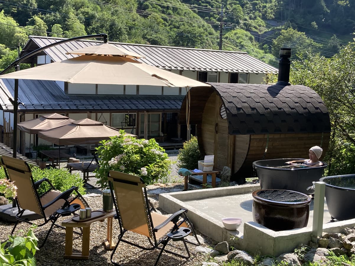 西山荘 笑美亭のバレルサウナは時間制の貸切りです。他の方とのバッティングがないので自分たちのペースでドライサウナ&ロウリュウ&水風呂&外気浴をお楽しみいただけます。