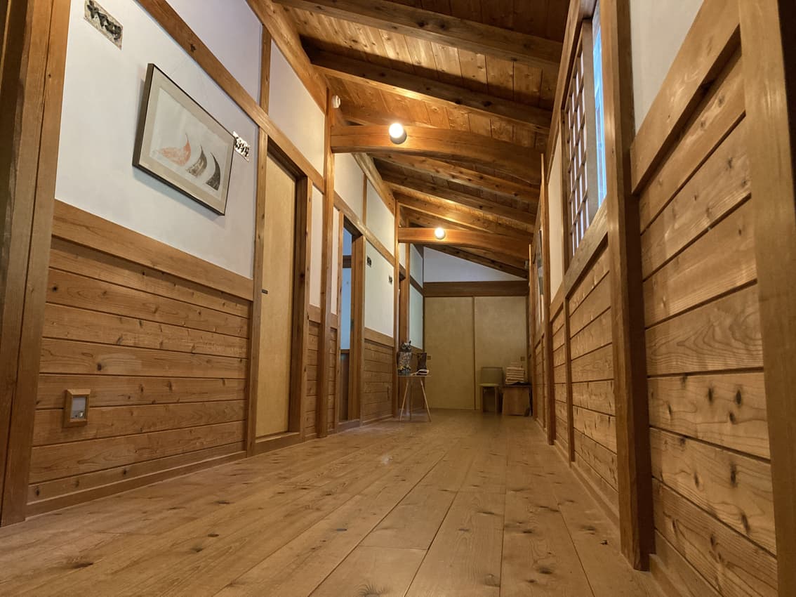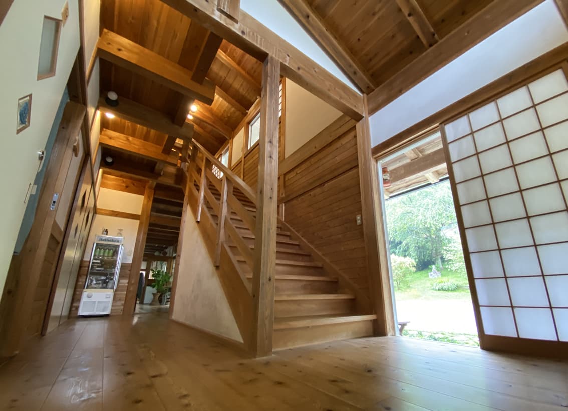 客室は2階にあるため階段をご利用いただきます。斜度をゆるくし足の悪い方にも配慮した造りになっています。