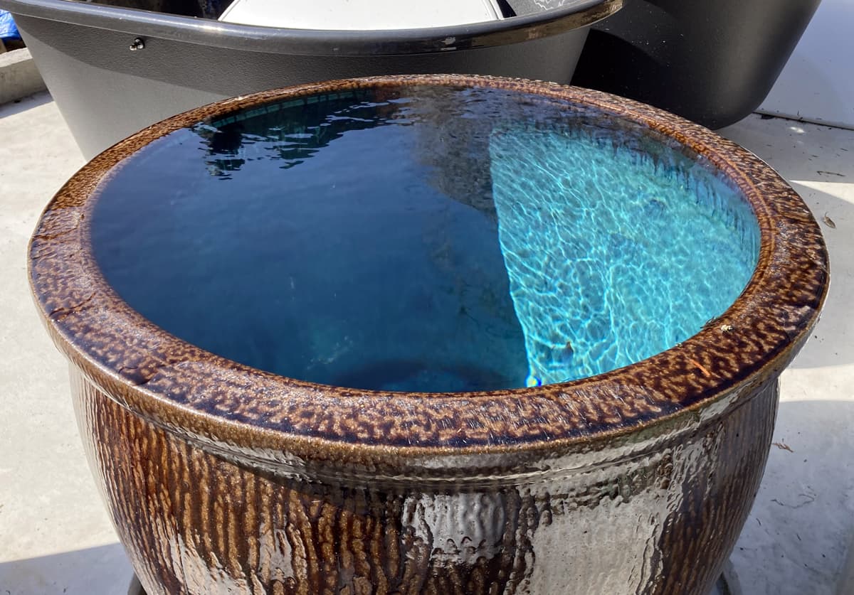 サウナから出たら水瓶から水を浴びて水風呂へ!